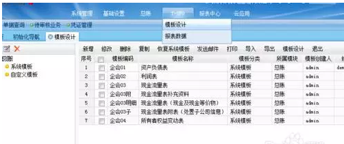 2.在软件的上方,找到”T-UFO——模板设计“,点开之后会在界面看到系统自带的一些列的报表。