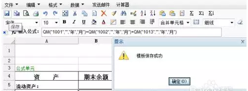 4.如何想添加某个科目的,直接复制前面的公式单元“FS("6601",月,"借",,年)”,然后在其后面添加一个“+”号,把公式单元粘贴“FS("6601",月,"借",,年)”,并且把会计科目给修改成要添加的会计编码。如:“FS("6601",月,"借",,年)+FS("6602",月,"借",,年)”,点击确定就可以了。最后点击一下上面的保存即可。