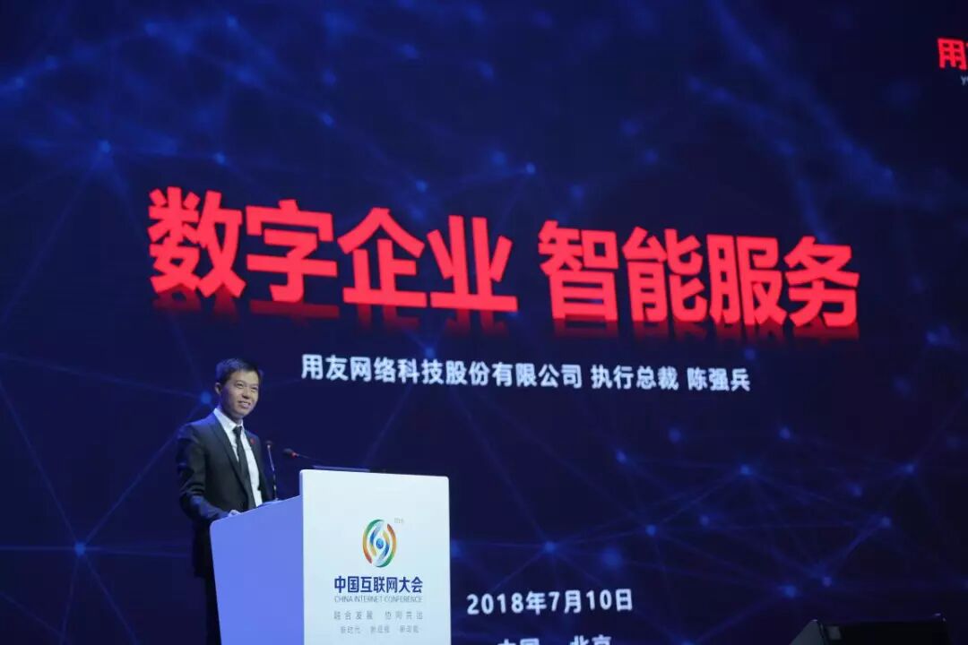 7月10日,用友网络执行总裁陈强兵出席以“融合发展 协同共治——新时代 新征程 新动能”为主题的2018(第十七届)中国互联网大会,在开幕论坛发表以《数字企业 智能服务》为主题的重要演讲,分享对产业互联网的洞察,以及用友在推动企业数字化、智能化方面的实践。